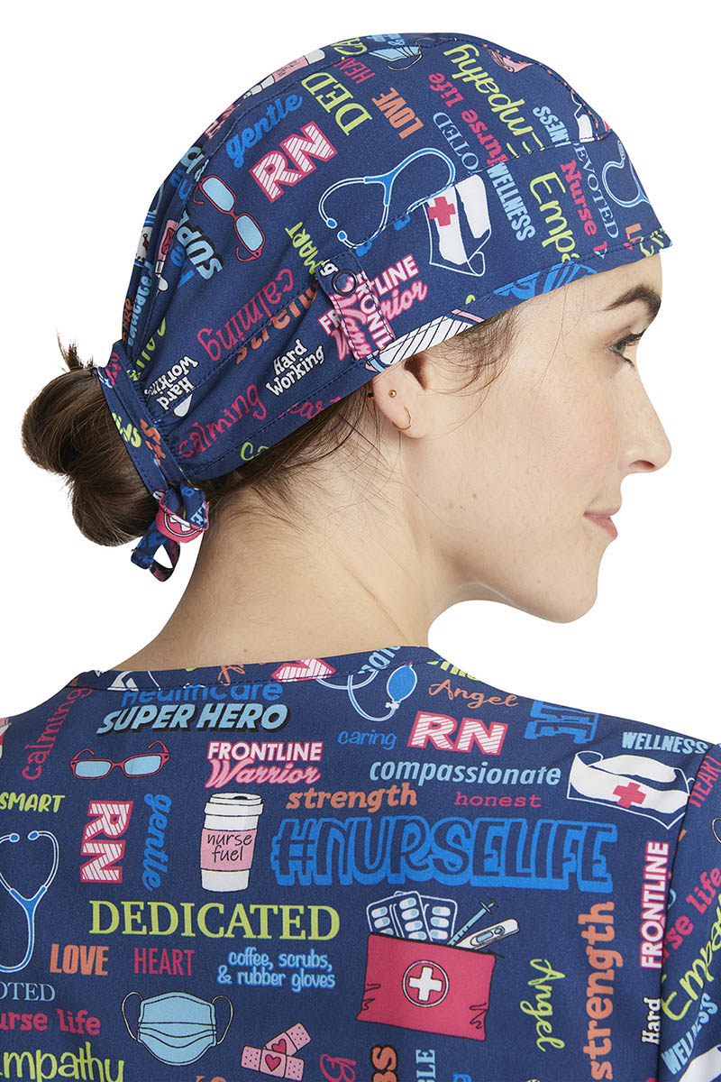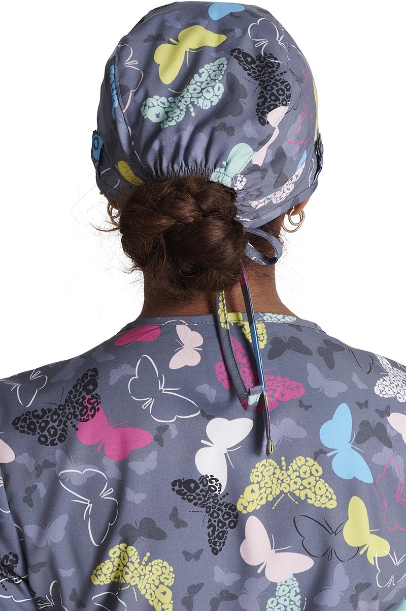 • Cintas con cierre de botón a presión a la altura de las orejas para sujetar cómodamente el cubrebocas (el cubrebocas se vende por separado).
